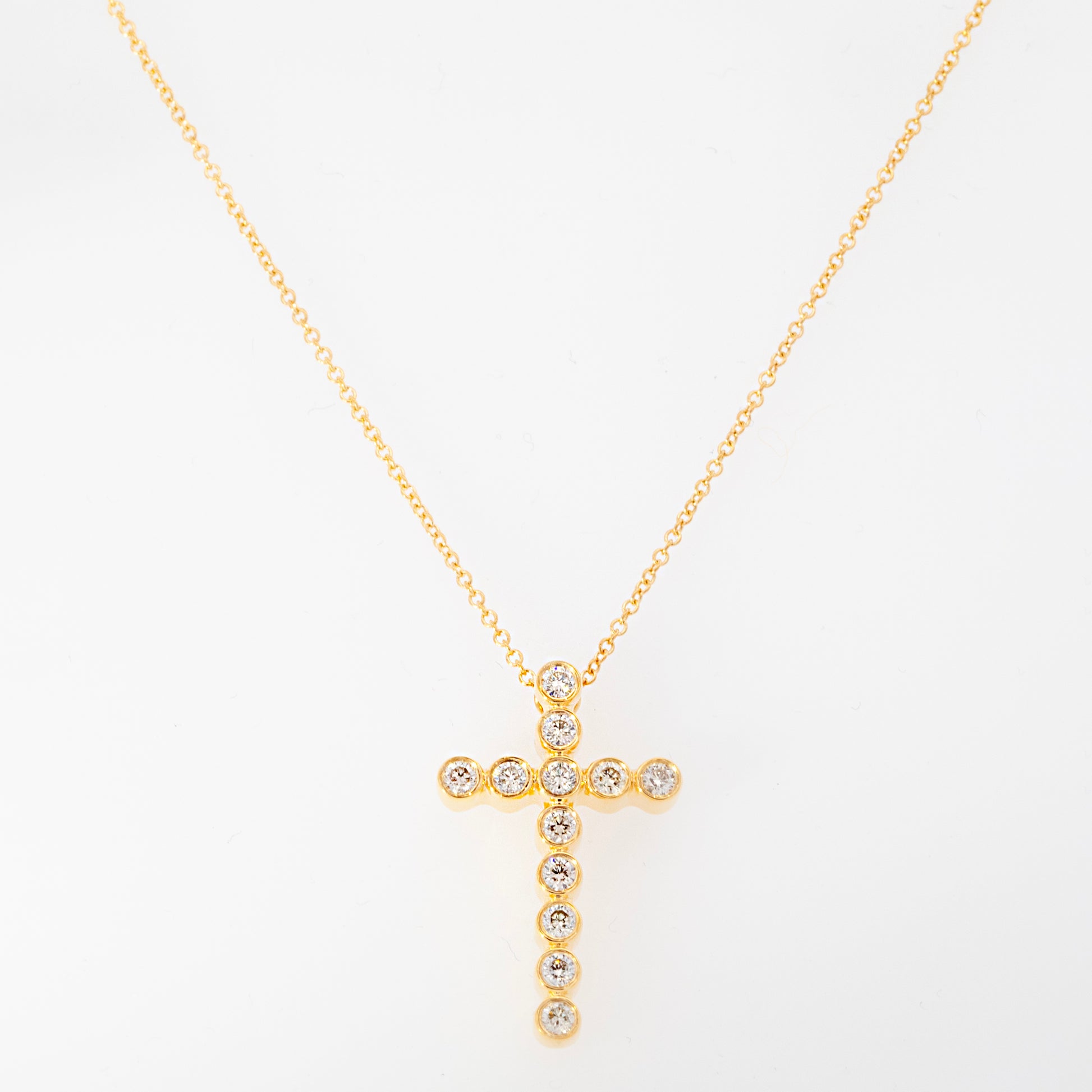 Collections/14K Yellow Gold Bezel Diamond Cross Pendant Necklace